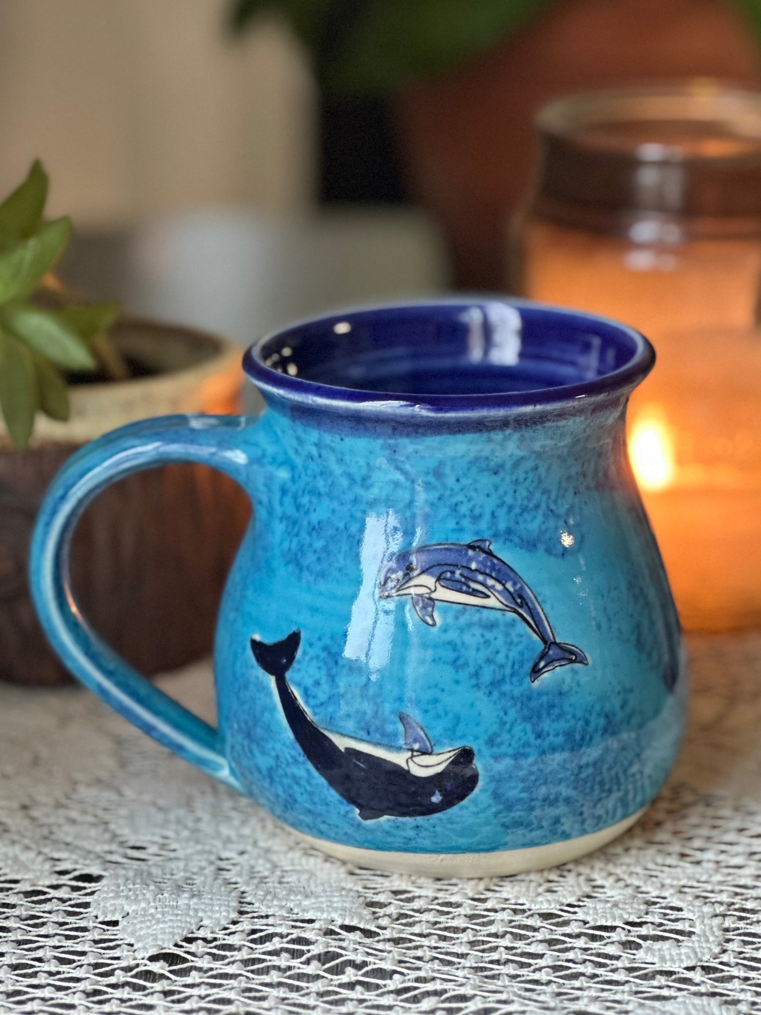 There’s something instantly uplifting about dolphins at play—and now they can swim right around your mug. Surrounded by calming teal waters, these graceful creatures add a splash of joy while keeping your favorite drink warm and cozy.
