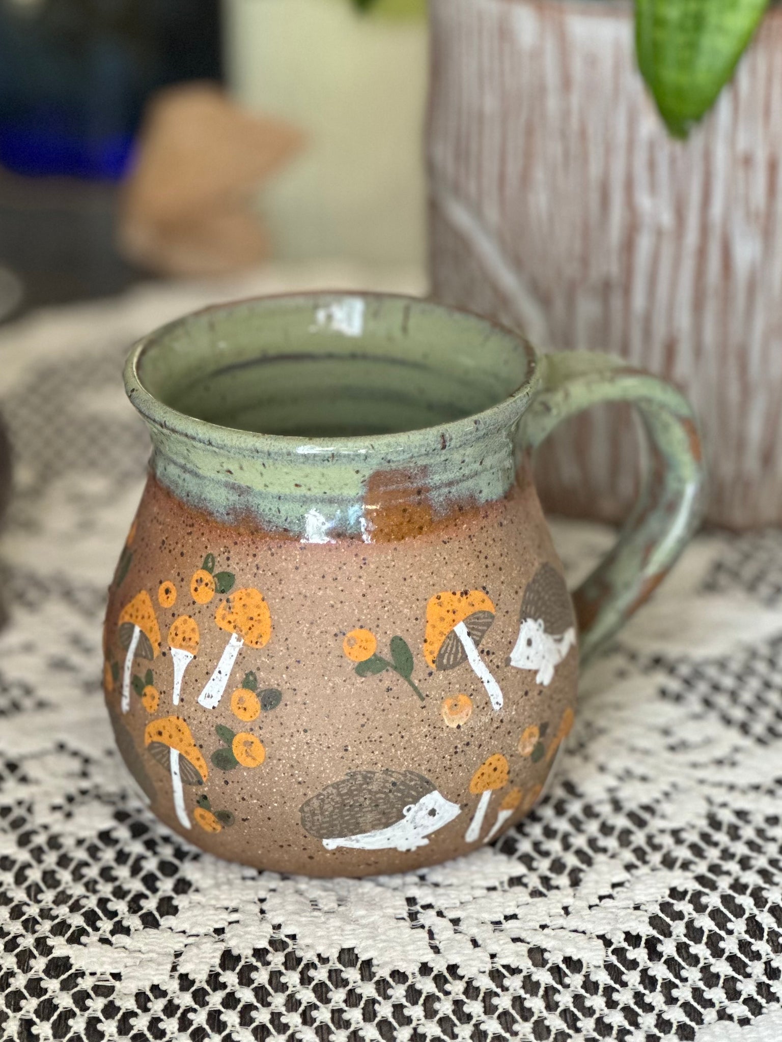 Rustic Hedgehog mugs are a cozy new addition to the shop this year, and I’m so excited to share them. These sweet little spiky foragers spend their days hunting for mushrooms and berries, bringing a bit of woodland charm to every piece. The bottom is left unglazed for a natural, earthy feel, while the inside and rim are fully glazed for everyday use.