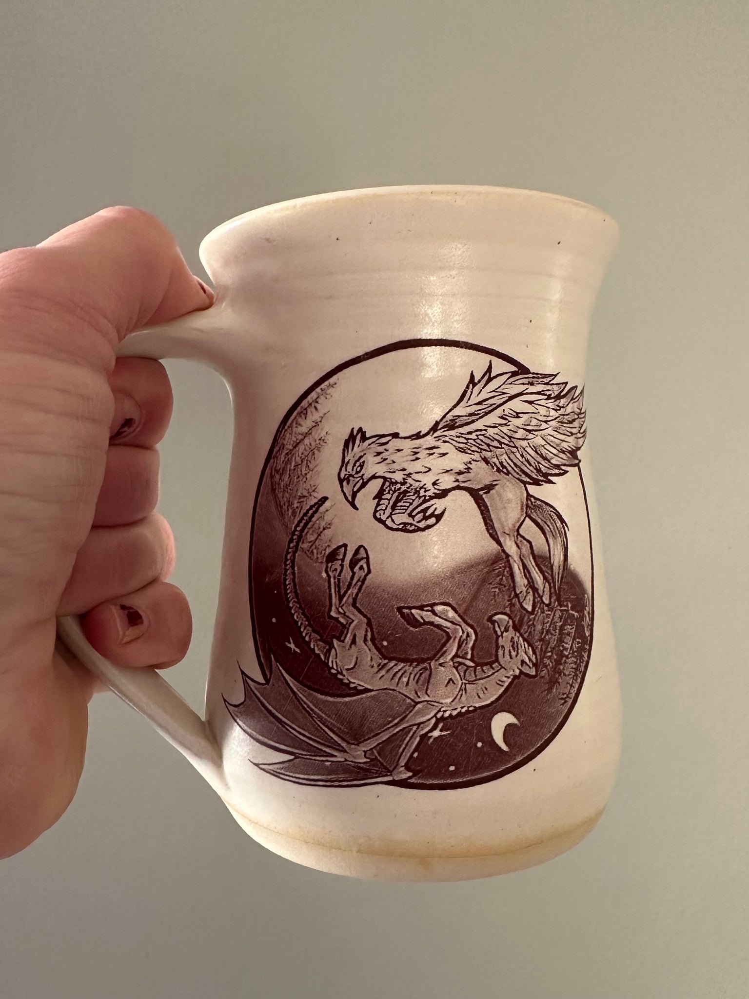 A design born from the dance of light and darkness—two magical beasts circling one another in a perfect yin-and-yang embrace. Dreamed up by yours truly and brought to life through digital artistry by my husband, this mug is a true blend of imagination and craft. Snag one for yourself and start your mornings with a touch of magic, or wind down in the evening with a cozy cup of tea cradled in something truly unique.